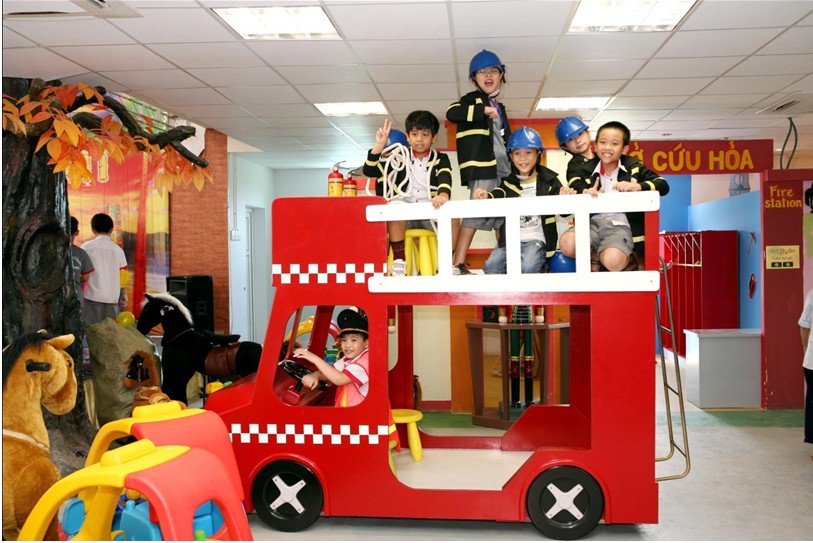 Это - веселая атмосфера в одном из развлекательных мест в Киндер-парке, где слышны голоса воспитательницы и малышей детского сада «Kaolar House», которые участвуют в сценке про пожарного. Мальчик Во Хоанг Линь, играющий брандмейстера пожарной команды, сказал: «Я участвую в пожарных играх, как и настоящий солдат пожарной команды. Я приехал сюда уже в третий раз в связи с расставанием с друзьями детского сада».