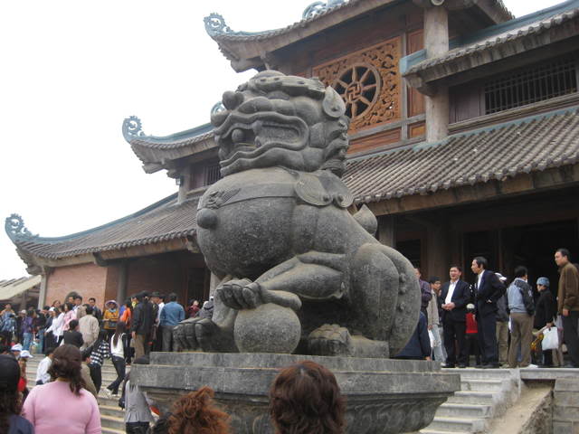 В своей повседневной жизни вьетнамцы считают буйвола и собаку самыми близкими животными. Буйвол помогает крестьянам пахать землю и производить рис, а собака помогает защищать дом от злоумышленников и хищных зверей. Со временем образ собаки начинают занимать всё более важное значение в духовной жизни древних вьетнамцев. Они создавали собак из камня, считая их священными животными, которые присматривают за домом и защищают его от злых духов. На Севере Вьетнама и сейчас перед воротами в каждую деревню стоит каменная собака для защиты всех членов деревни. Более того, перед домом каждой семьи также сидит каменная собака. Обычно эти собаки тщательно вырезаются из камня и выглядят очень солидно. Иногда перед домом ставят лишь камень, похожий на сидящую собаку. В священных местах, таких как храм, пагода... можно встретить образ животного «Нге», который был создан на основе каменной собаки. Со временем «Нге» становится особым мифическим животным во вьетнамской культуре. Животное «Нге» сильно отличается от цилиня в китайской культуре, поскольку цилинь похож на льва с рогом, его ноги похожи на ноги буйвола. У цилиня толстое туловище, покрытое чешуей, как у дракона. Он держит во рту жемчужину или сидя, ставит лапу на жемчужину. А у вьетнамского животного «Нге» стройное туловище, собачьи ноги, и нет рога. Исследователь культуры в городе Хошимине Нгуен Тхань Тунг сказал: «Животное «Нге» мифический образ. С богатой фантазией наши предки придумали образ животного «Нге», не похожего ни на одно мифическое животное на свете. Я очень рад, что мноие студенты посетили выставку с желанием больше узнать о традиционной культуре своего народа».