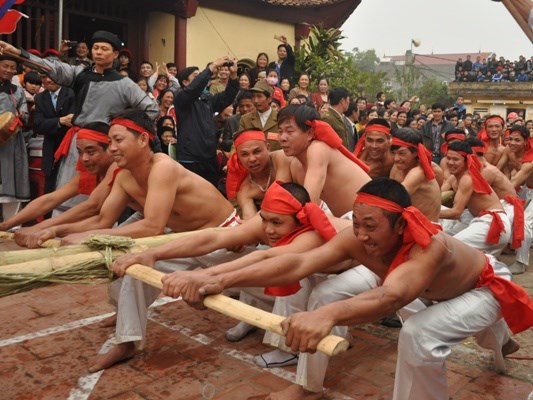 Фестиваль деревни Хыучап в общине Хоалонг, что ныне является территорией северной провинции Бакнинь, в общем похож на другие фестивали в разных районах страны. Однако с давних пор местный фестиваль знаменит именно перетягиванием каната. Согласно легенде, в древности деревню Хыучап и её общинный дом строили физически сильные люди, которые сами таскали огромные стволы железных деревьев. Наверное, именно поэтому перетягивание каната стало самой популярной игрой среди местного населения. Фестивалю перетягивания каната деревни Хыучап уже более 400 лет. Его ежегодно устраивают 4 января по лунному календарю. В рамках этого фестиваля также организовывают шествие с паланкинами и жертвоприношения. Старожил Нгуен Ван Чуан рассказал: «На самом деле в нашей деревне перетягивают не канат, а два крепко привязанные друг к другу бамбука с коромыслами на двух концах. Это символизирует физическую силу молодых людей, которые в древности таскали стволы железных деревьев. Мы начинаем готовиться к фестивалю за несколько месяцев, чтобы успеть найти подходящий бамбук. Пожертвовать собственно выращенный бамбук – это большая честь для любого жителя нашей деревни. Если юношу взяли в команду, то это большая честь для всей его семьи».