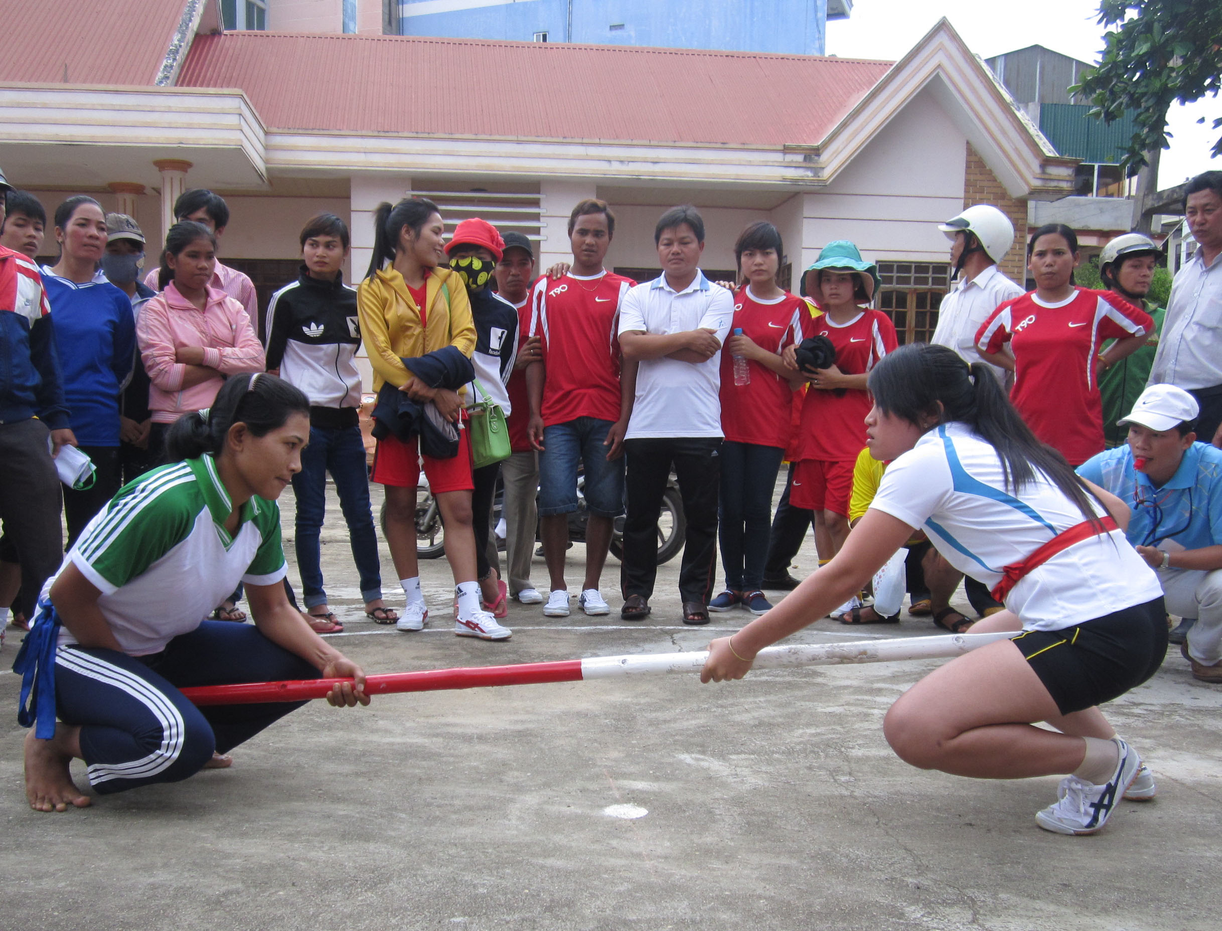 Игра «Переталкивание палки» имеет очень простые правила; самое важное условие – участники должны быть сильными, ловкими и выносливыми для одержания победы в единоборстве. Используют разукрашенную в красный и белый цвет бамбуковую палку длиной 2 метра. В качестве ринга на земле изображают большой круг диаметром 5 метров с некоторыми отметками. По правилам, кто вышел из круга или заступил за линию, тот проиграл. Спортсмены соревнуются в 2-3 раунда. Переталкивание палки постепенно превратилось из народной игры в популярный вид спорта, который помогает людям закаляться не только физически, но и морально. Фам Тхи Хуен из провинции Бакзянг 8 раз принимала участие во всереспубликанском турнире. Она поделилась своими размышлениями: «Раньше я занималась боевыми искусствами, и учитель познакомил меня с переталкиванием палки. Сначала это просто было моим хобби, но потом я серьёзно занялась этим видом спорта. Я стараюсь внести небольшой вклад в сохранение этой народной игры».