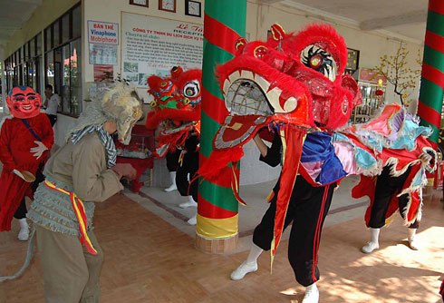 По традиции, ежегодно вечером 30 декабря по лунному календарю, то есть в преддверии новогоднего праздника, члены кружка приезжают в центр уезда Жонгчом встречать Новый год вместе с местными жителями. Этот кружок очень известен в здешних местах благодаря страстному желанию выступать перед публикой. В настоящее время его члены идут в авангарде движения развития культурного образа жизни. Председатель Общества ветеранов войны общины Лыонгхоа Нгуен Ван Мьен отметил: «В стране наступил мир, и мы решили восстановить кружок исполнительниц танца льва. Этот кружок пользуется большой популярностью среди местного населения. Надеемся, что он будет продолжать свою деятельность, чтобы передать будущим поколениям традиции нашего народа».