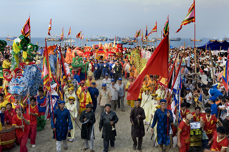Ежегодно 15-го числа 8-го месяца по лунному календарю проходит фестиваль «Нгинь Онг» в честь владыки морского царства с надеждой на благоприятную погоду, большой улов, счастье и благополучие. Председатель оргкомитета фестиваля «Нгинь Онг» 2018 года Нгуен Ван Лонг рассказывает: «Этот фестиваль проводится у нас уже сотни лет подряд. Согласно легенде, однажды гигантский кит весом 18 тонн подплыл к берегу и принёс с собой хорошую погоду, много рыбы и креветок. Люди весь год были счастливы и здоровы. Впервые фестиваль был организован в 1817 году, а в 2000 году он был официально признан Министерством культуры, спорта и туризма Вьетнама объектом национального культурного наследия».