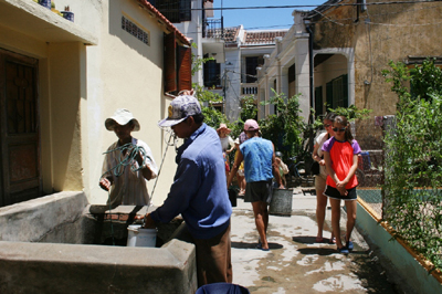 | Люди стоят в очереди за водой |
