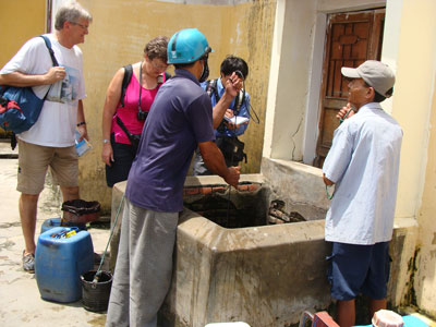 | Иностранные туристы у старого колодца |