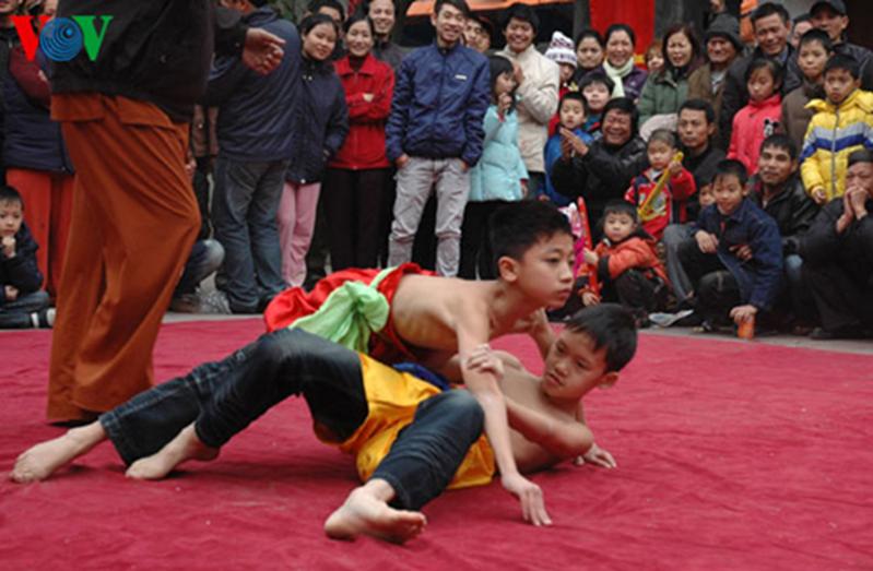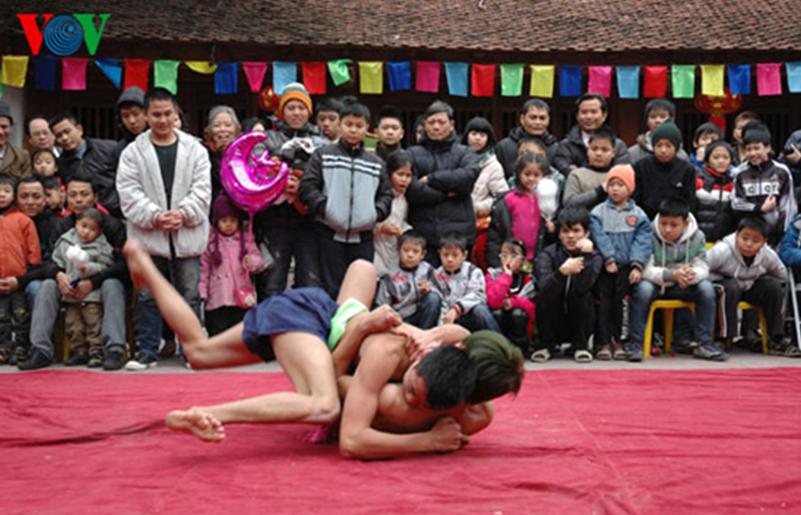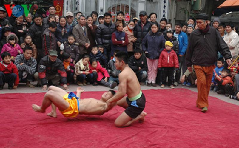 (VOVworld) - Для крестьян сельских районов Северного Вьетнама давно уже стало доброй традицией проводить состязания по традиционной вьетнамской борьбе - «во ват» во время весенних праздников. В древней деревне Майдонг, расположенной к югу от Ханоя, раньше носившей название Тханглонг еще сохраняются праздник «во ват» и состязания по этой национальной борьбе. Ежегодно, с четвертого по 6 января по лунному календарю в деревне Майдонг оживленно проводятся состязания по борьбе «во ват» с целью демонстрации благородства нации,и пробуждения чувства гордости за традицию мужества и героизма в борьбе с иноземными захватчиками.