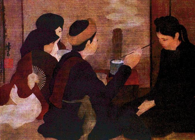 В настоящее время в Историческом музее Вьетнама еще хранится картина на шелке, на которой нарисован Нгуен Чай – выдающийся культурный деятель Вьетнама в период правления династии Ле в 15-м веке. Здесь также хранятся некоторые культовые картины на шелке, такие как картина известного деятеля культуры Фунг Кхак Хоана (1528-1613 гг.), 4 портрета знаменитых людей из древнего рода Фан Хи. Это показывает, что картины на шелке появились во Вьетнаме уже давно и занимали значительную позицию в традиционном национальном искусстве. Однако, большинство древних шелковых картин это - портретные образы с достаточно простыми оттенками в зарисовке. Вьетнамская живопись на шелке по-настоящему вступила в период расцвета в 30-е годы прошлого века, когда некоторые художники, окончившие Высшую школу изящных искусств Индокитая восприняли классическое наследие европейской живописи, сохряняя национальные традиции Восточного искусства, создали уникальные произведения на шелке. Среди них следует рассказать о художнике Нгуен Фан Тяне (1892-1984), нарисовавшем множество известных картин на шелке, таких как «проматывают рис», детская игра «о-ан-куан», «гадалка», «колдунская церемония»..., а также картины, где нарисованы девушки, а также сельские пейзажи Вьетнама. Эти картины, которые были экспонированы на многих отечественных и международных выставках изящного искусства, вызывали большой резонанс у посетителей. Художник Нгуен Фан Тянь является создателем оригинальной техники живописи на шелке, что принесло вьетнамским картинам на шелке своеобразность и современность.