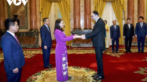 (VOVWORLD) - Утром 15 мая в президентской резиденции исполняющая обязанности президента Во Тхи Ань Суан провела встречи с послами Армении, Новой Зеландии, Турции и Перу в связи с началом их срока полномочий во Вьетнаме.