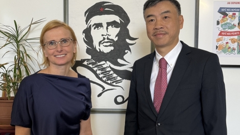 (VOVWORLD) - 17 апреля в Праге посол Вьетнама в Чехии Зыог Хоай Нам провел встречу с председателем Коммунистической партии Чехии и Моравии Катержиной Конечной, обсудив с ней меры по активизации двустороннего сотрудничества и отношений между двумя партиями.