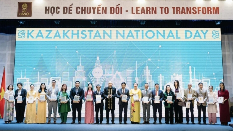 (VOVWORLD) - Посольство Казахстана во Вьетнаме 21 ноября в Ханойском университете устроило официальный прием по случаю Национального праздника – Дня Республики и 35-й годовщины декларации «О государственном суверенитете Казахстана».