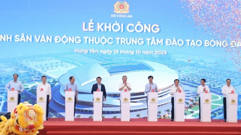 (VOVWORLD) - 19 октября, в провинции Хынгиен Министерство общественной безопасности официально запустило строительство стадиона PVF вместимостью 60 тысяч зрителей. В церемонии закладки фундамента принял участие Генеральный секретарь ЦК КПВ То Лам.