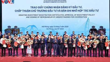(VOVWORLD) - 15 июля в Хайфоне Вьетнамская торгово-промышленная палата (VCCI) совместно с городом Хайфон организовала конференцию по продвижению инвестиций на тему «Хайфон — стратегическое направление новой эпохи».