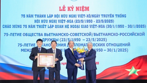 (VOVWORLD) - В знак признания выдающихся достижений и активного вклада Общества вьетнамско-российской дружбы в развитие народной дипломатии за последние годы, премьер-министр СРВ принял решение наградить Общество Почётной грамотой.