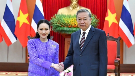 (VOVWORLD) - 16 мая во второй половине дня в Ханое генеральный секретарь ЦК КПВ То Лам принял премьер-министра Таиланда, лидера партии «Пхыа Тхаи» Пхетхонгтхан Чинават, находящуюся во Вьетнаме с официальным визитом и для сопредседательства на 4-м совместном заседании кабинетов министров Вьетнама и Таиланда.