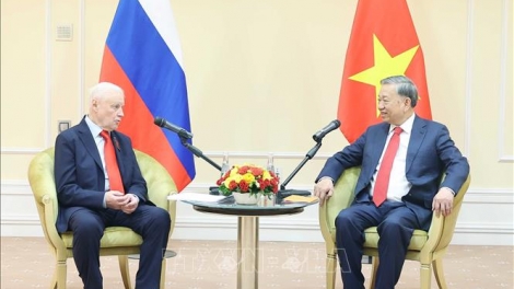 (VOVWORLD) - Вьетнам продолжает углублять сотрудничество с Россией во имя развития обеих стран и в интересах двух народов. Это подтвердил 10 мая в Москве генсек ЦК КПВ То Лам на встрече с председателем партии “Справедливая Россия — патриоты — за правду» Сергеем Мироновым”.