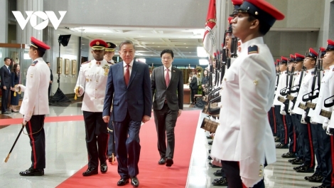 (VOVWORLD) - По итогам официального визита генсека ЦК КПВ То Лама в Республику Сингапур с 11 по 13 марта по приглашению премьер-министра, генерального секретаря Партии народного действия Лоуренс Вонга обе стороны сделали совместное заявление о выводе вьетнамо-сингапурских отношений на уровень Всеобъемлющего стратегического партнёрства.