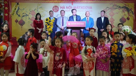 (VOVWORLD) - Вечером 24 января в многофункциональном центре «Ханой-Москва» в Москве состоялась программа «Тэт в кругу семьи – встреча нового года Зелёной деревянной змеи 2025».