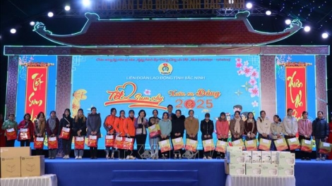 (VOVWORLD) - Вечером 10 января в промзоне Куэво 1 в квартале Намшон (город Бакнинь) Федерация труда провинции Бакнинь организовала программу «Тет с родными – весенняя благодарность Партии; Праздник рабочих – Новогодний профсоюзный базар» 2025.