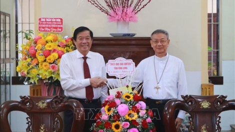 (VOVWORLD) - 23 декабря в провинциях Бакнинь, Куангбинь и Виньлонг местные руководители навестили священнослужителей, монахов, местных католиков и поздравили их с Рождеством и наступающим новым годом.