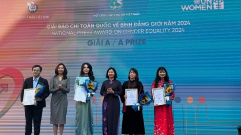(VOVWORLD) - ЦК Союза вьетнамских женщин совместно со Структурой ООН по вопросам гендерного равенства и расширения прав и возможностей женщин («ООН-женщины») и Союзом вьетнамских журналистов провели церемонию награждения победителей первой всереспубликанской премии за гендерное равенство 2024 года. В рамках мероприятия были отмечены лучшие журналистские работы по вопросам гендерного равенства, а также активный вклад отдельных лиц и коллективов в продвижение гендерного равенства в стране за последнее время.
