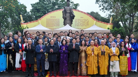 Президент Вьетнама Лыонг Кыонг вместе с представителями вьетнамской диаспоры за рубежом воскурил благовония у памятника Ли Тхай То и в храме Нгокшон