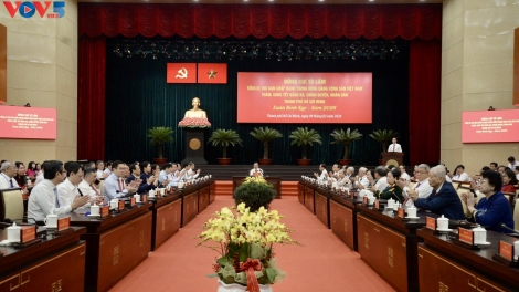 (VOVWORLD) - Генсек ЦК КПВ То Лам поручил городу Хошимин совершить институциональные, инфраструктурные и трудовые прорывы, обновлять модель роста, эффективно продвигать механизмы и политику, поэтапно формировать финансовые и логистические центры.