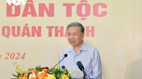 (VOVWORLD) - Вечером 12 ноября по случаю 94-й годовщины традиционного дня Отечественного фронта Вьетнама (ОФВ) (18 ноября 1930 г. – 18 ноября 2024 г.) Генеральный секретарь ЦК КПВ То Лам принял участие в праздновании Дня всенародного единства в квартале Куантхань ханойского района Бадинь.