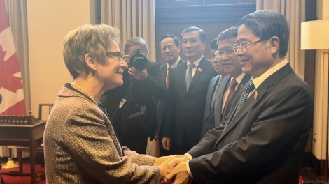 (VOVWORLD) - В рамках своего рабочего визита в Канаду 1 октября в Оттаве зампредседателя Нацсобрания Вьетнама Нгуен Дык Хай нанёс визит спикеру Сената Канады Раймонду Ганье.