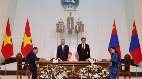 (VOVWORLD) - В рамках государственного визита в Монголию 30 сентября по окончании переговоров генсек ЦК КПВ, президент То Лам и президент Ухнаагийн Хурэлсух присутствовали на церемонии подписания документов о сотрудничестве между ведомствами двух стран.