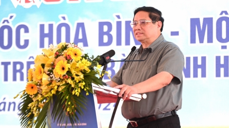 Премьер-министр Фам Минь Тинь присутствовал на церемонии закладки фундамента высокоскоростной автомагистрали Хоабинь-Моктяу