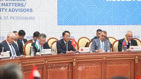 (VOVWORLD) - По приглашению секретаря Совета безопасности Российской Федерации генерала армии Сергея Шойгу высокопоставленная вьетнамская делегация во главе с министром общественной безопасности генерал-полковником Лыонг Там Куангом прибыла в РФ для участия во встрече высоких представителей стран БРИКС по вопросам безопасности в Санкт-Петербурге.