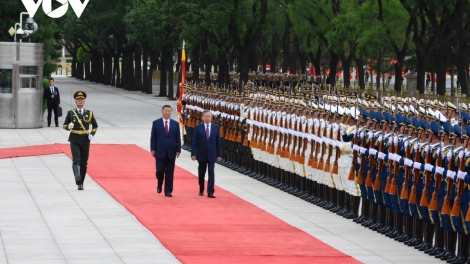 (VOVWORLD) - На площади Тяньаньмэнь в Пекине артиллерия произвела 21 выстрел в честь генсека ЦК КПВ, президента То Лама. Здесь лидер Китая Си Цзиньпин тепло приветствовал главу Компартии и государства Вьетнама То Лама. Оба руководителя заняли места на специальном подиуме. Оркестр сыграл гимны.