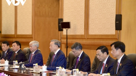(VOVWORLD) - Утром 19 августа в Доме народных собраний в Пекине генсек ЦК КПВ, президент То Лам провёл переговоры с генсеком ЦК КПК, председателем КНР Си Цзиньпином.