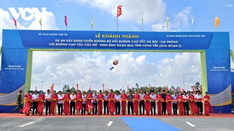 (VOVWORLD) - Утром 7 июля в рамках своей рабочей поездки в провинцию Хынгиен премьер-министр Фам Минь Тинь присутствовал на церемонии открытия дороги, соединяющей скоростную автомагистраль Ханой-Хайфон со частью скоростной автомагистрали Кауже-Ниньбинь, проходящей провинцию Хынгиен.