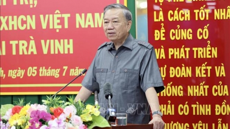 (VOVWORLD) - В рамках рабочей поездки в провинцию Чавинь 5 июля во второй половине дня президент То Лам обсудил с руководством этой провинции вопросы обеспечения национальной обороны и безопасности, судебной реформы, дипломатии и социально-экономического развития.