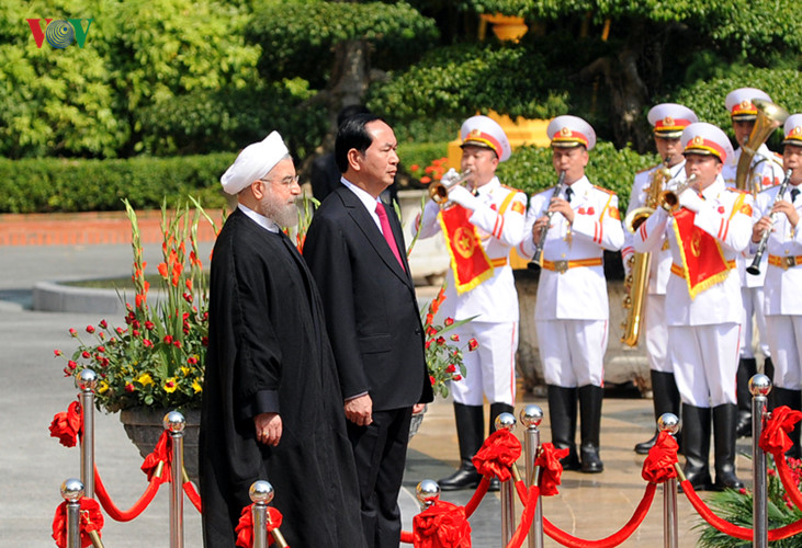 Вьетнам стал первой остановкой в ходе турне иранского президента Хасана Роухани по трём странам Юго-Восточной Азии: Вьетнаму, Малайзии и Таиланду. Данный визит проходит после государственного визита в Иран президента Вьетнама Чыонг Тан Шанга в марте текущего года. Это рассматривается как редкий случай в истории дипломатических отношений, когда президенты двух стран совершают взаимные государственные визиты в одном году. В нынешней обстановке данный визит во Вьетнам главы иранского государства направлен на дальнейшее укрепление отношений между двумя странами. В рамках визита стороны обсуждают меры по активизации сотрудничества в сферах торговли, инвестиций, туризма, сельского хозяйства и т.д., а также международные и региональные вопросы, представляющие взаимный интерес.