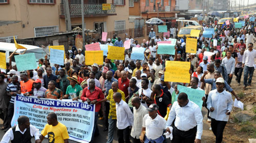 Демонстрации прошли сразу после того, как управление по регулированию цен на нефтепродукты Нигерии с 1-го января отменило топливную субсидию, в результате чего цена на бензин взлетела с 65 до 140 найра, т.е. 0,96 доллара. Нигерия является крупнейшим нефтедобывающим государством в Африке - объемы производства сырья достигают двух миллионов баррелей в день. Вместе с этим в стране практически не развита нефтеперерабатывающая промышленность, топливо закупают за рубежом. По словам правительственных чиновников, в 2011 году Нигерия выделяла 8 миллиардов долларов США для субсидии на топливо. Отмена субсидии будет приносить в казну денежные средства, которые пойдут на развитие инфраструктуры, которая сейчас находится в плохом состоянии и снижение давления на валютные резервы. Однако, для нигерийцев, у которых дневной доход менее 2 доллара в день, отмена субсидии – это потеря поддержки от правительства. Поэтому вышеуказанные демонстрации проходят в течение 10-и дней и не прекращаются. По мнению демострантов, решение правительства принесет выгоду богатым. Между тем, произошел резкий скачок на транспортные тарифы, поэтому жители сталкиваются с большими трудностями. 9-го января в некоторых городах произошли столкновения между манифестантами и полицейскими, в результате чего погибли и получили ранения десятки человек. Акция протеста против повышения цен на бензин началась в Нигерии. Сотни нигерийцев вышли на улицы крупнейшего города страны - Лагоса. Протестующие начали шествие, скандируя антиправительственные лозунги. В понедельник, 9-го января, закрылись многие магазины, банки и автозаправочные станции, а обычно загруженные улицы порта опустели. Между тем, в Нигерии также обострились этнорелигиозные конфликты. Нигерия – страна с самым большим числом населения в Африке. Большинство мусульман живут на Севере, а христиане на Юге. Исламистская группировка Боко Харам – автор кровавых нападений на христиан за последнее время выдвинула ультиматум христианам, потребовав от них переехать на Юг. Сама эта группировка также провела ряд взрывов террористов-смертников по всей Нигерии на прошедшее Рождество, в результате чего, по-меньшей мере погибли 37 человек и 57 ранены. 4-го января во второй половине дня на Севере страны также произошли тройные взрывы вопреки указу о чрезвыйчайних ситуациях, опубликованному президентом Гудлаком Джонатаном.