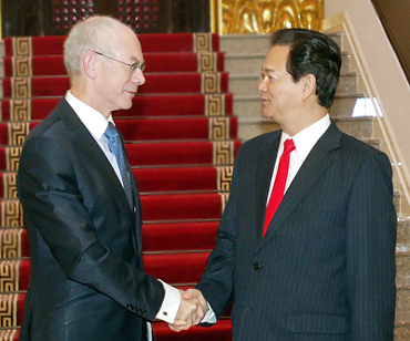 Также в 2012 году Вьетнам принял многих высокопоставленных чиновников ЕС, таких как член Европейского Совета по сотрудничеству и развитию, Генеральный директор-распорядитель по внешним делам Европейской комиссии. Наиболее важным событием в отношениях между Вьетнамом и ЕС в 2012 году стал официальный визит во Вьетнам председателя Европейского Совета Херман ван Ромпея по приглашению президента СРВ Чыонг Тан Шанга. Это первый визит по Вьетнам председателя Европейского Совета с момента установления дипотношений между двумя сторонами в 1990 году. В ходе данного визита обе стороны пришли к единому мнению о необходимости дальнейшего развития отношений сотрудничества в различных сферах, в частности, в активизации обмена делегациями на высоком уровне, создании деловым кругам Вьетнама и ЕС благоприятных условий для долговременной инвестиционной и предпринимательской деятельности на рынках обеих сторон, в частности, в сферах промышленности, строительства объектов инфраструктуры, транспорта и путей сообщения, энергетики, финансов, здравоохранения, туризма и услугов. Обе стороны также наметили приоритеты сотрудничества на период 2014-2020 годов: сокращение бедности, устойчивое развитие, защита окружающей среды, противодействие климатическим изменениям. Обе стороны также согласовали усилия, направленные на укрепление мира, стабильности, сотрудничества и дружбы в ЮВА, подчеркивая необходимость обеспечения безопасности и свободы мореплавания в Восточном море. Оценивая важность сотрудничества с Вьетнамом, председатель Европейского Совета Херман ван Ромпей отметил: «Вьетнам - особо важный партнер ЕС в Азии и в АСЕАН, с быстро развивающейся экономикой, с молодым населением, получившим хорошее образование. Я надеюсь, что отношения между обеими сторонами будут расширяться на основе подписанного в начале текущего года Соглашения РСА. Мы глубоко заинтересованы в достижении Вьетнамом больших успехов в разных сферах, поскольку успехи Вьетнама принесут пользу всему региону и всем его друзьям в мире».