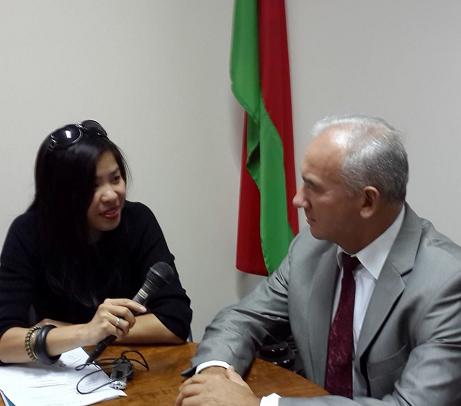 Чрезвычайный и полномочный посол Республики Беларусь во Вьетнаме Валерий Садохо дает интервью корреспондентке Радио «Голос Вьетнама». Фото: VOV |