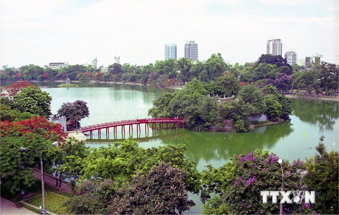 | Озеро Возвращенного меча (Хоанкием) в центре Ханоя. Фото: VNА/ Dinh Na |
