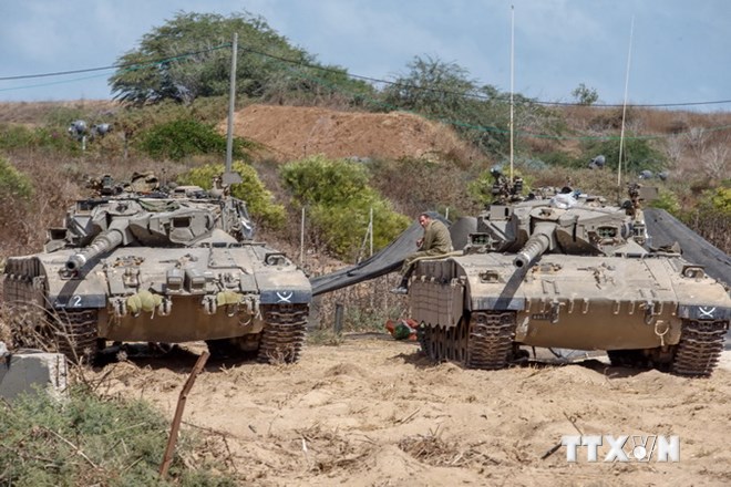| Танки израильской армии вблизи границы с сектором Газа, 15 июля. Фото: Синьхуа/VNА |