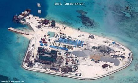 | Незаконное строительство Китаем одного из искусственных островов в районе вьетнамского архипелага Чыонгша. Фото опубликовано китайскими СМИ |