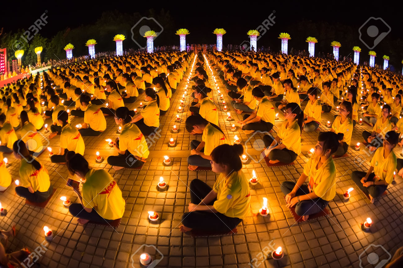 | Буддисты в пагоде Байдинь (вьетнамская провинция Ниньбинь) во время Великого буддийского праздника ООН «Весак» в мае 2014 года |
