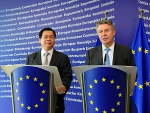 (VOVworld) - В среду в Брюсселе (Бельгия) министр иностранных дел СРВ Фам Бинь Минь и верховный представитель ЕС по иностранным делам и политике безопасности Кэтрин Эштон официально подписали соглашение о всестороннем партнерстве и сотрудничестве между Вьетнамом и Евросоюзом и начали переговоры по соглашению о двусторонней свободной торговле. Это событие открыло новый этап в развитии отношений между Вьетнамом и Евросоюзом.