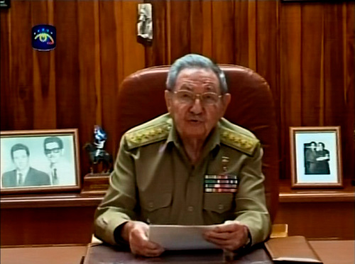 | Председатель Госсовета Кубы Рауль Кастро выступает по телевидению. Фото: Reuters |