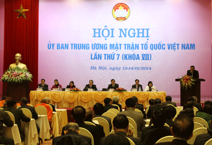 (VOVworld) - Одним из важных вопросов, которые были вынесены на обсуждение на 7-й конференции ЦК Отечественного Фронта Вьетнама (ОФВ) 7-го созыва на текущей неделе, стала реализация механизма контроля и наблюдения и социального оппонирования в духе Конституции СРВ. Это также является задачей ОФВ в 2014 году и в последующие годы.