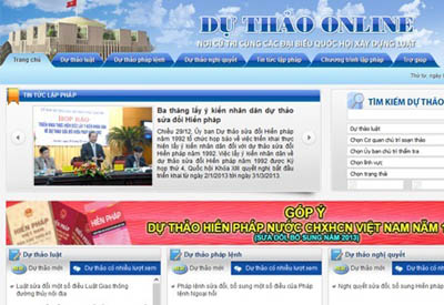 | Веб-страница для сбора мнений по проекту внесения поправок в Конституцию СРВ от 1992 года |