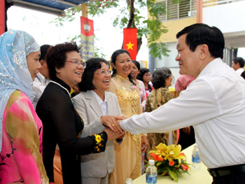 Президент Вьетнама Чыонг Тан Шанг встречается с жителями города Хошимина. Фото: TTXVN