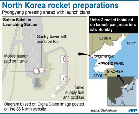 (VOVworld) - Как мы уже сообщали, запуск спутника будет осуществлен КНДР с космодрома в уезде Чолсан в провинции Пхёнян-Пукто в период с 12 по 16 апреля в честь 100-летия со дня рождения основателя Республики Ким Ир Сена. Дата запуска спутника «Кванмёнсон-3» приближается на фоне волны протеста, поднимающейся в некоторых странах, в частности, в Японии, Республике Корея и США.