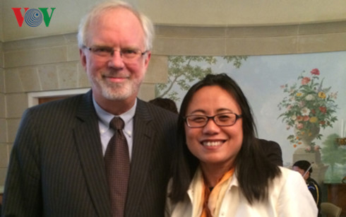 | Бывший посол США во Вьетнаме Майкл Мичалак и директор-распорядитель Фонда развития образования во Вьетнаме Сэнди Данг. Фото: VOV |