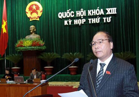 (VOVworld) - В рамках проходящей в Ханое, 4-й сессии Национального Собрания СРВ 13-го созыва, в понедельник утром вице-премьер СРВ Нгуен Суан Фук от имени вьетнамского правительства представил доклад о претворении в жизнь парламентских резолюций, связанных с ответами министров на запросы депутатов на предыдущих сессиях. Речь идёт о выполнении обещаний, данных депутатам и избирателям всей страны членами правительственного кабинета на первой и второй сессиях Национального Собрания СРВ 13-го созыва.